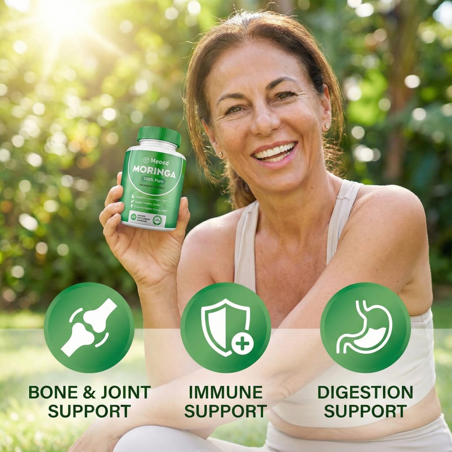 Meoed Moringa is made with 100% pure, natural ingredients and is generally safe for most individuals. It is Certified Vegan, Gluten-Free, and Non-GMO, making it suitable for almost any diet. However, if you have specific health concerns or are taking medication, we always recommend talking to your doctor before starting any new supplement.